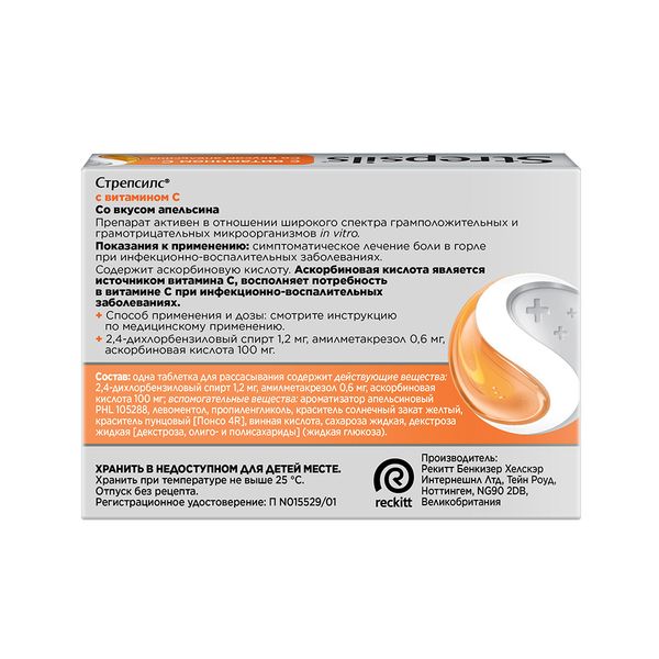 Стрепсилс с витамином С таблетки для рассасывания со вкусом апельсина №24