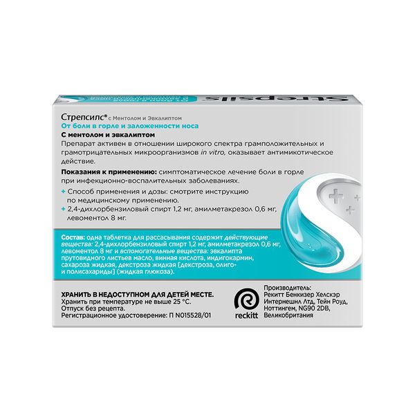 Стрепсилс таблетки для рассасывания с ментолом и эвкалиптом №36