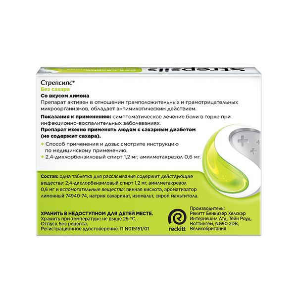 Стрепсилс таблетки для рассасывания со вкусом лимона без сахара №36