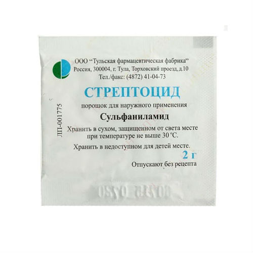 Действующее вещество: Сульфаниламид (стрептоцид) — 2 г, 3 г, 5 г.