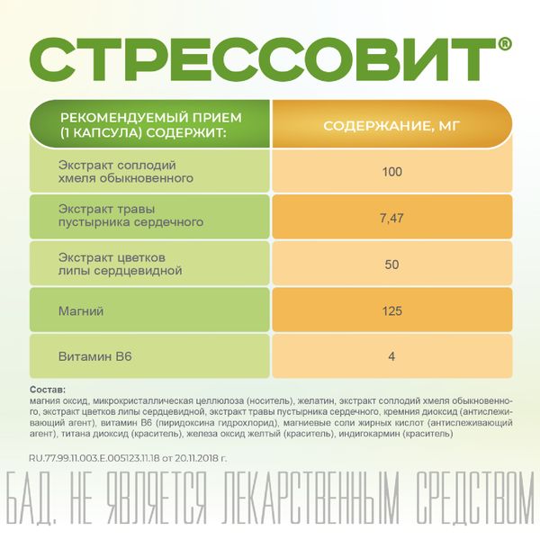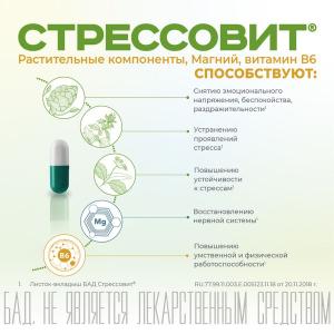 СТРЕССОВИТ® – комплекс растительных экстрактов, витамина В6 и магния, обладающий мягким успокоительным действием.