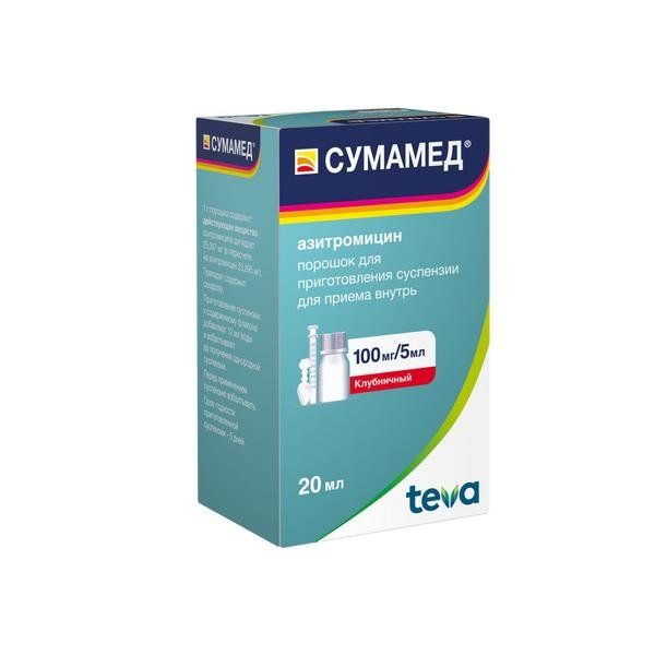 Сумамед порошок для приготовления суспензии для приёма внутрь 100мг/5 мл флакон 20,925г