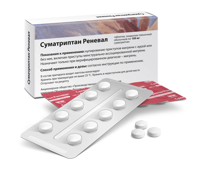 Суматриптан Реневал таблетки покрытые плёночной оболочкой 100мг №10