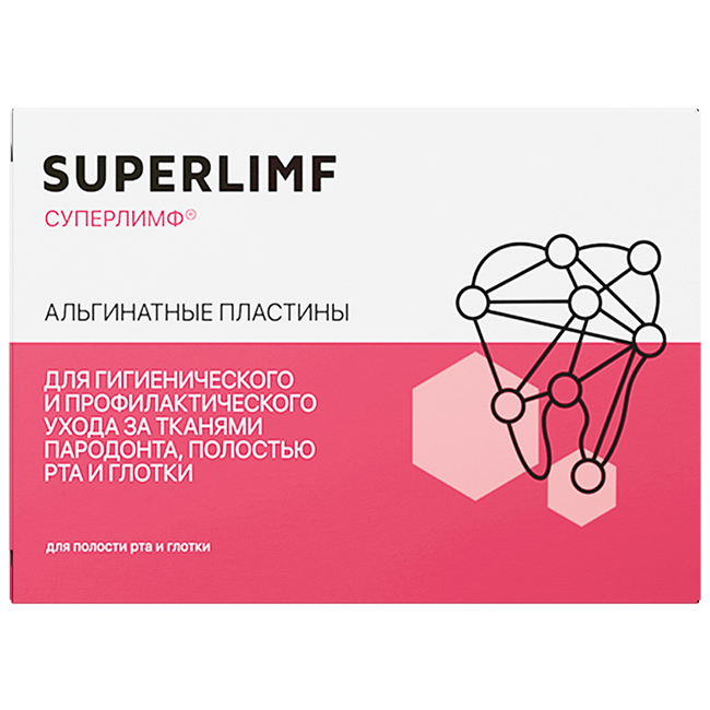 Альгинатные пластины «Суперлимф®» применяются местно для гигиенического и профилактического ухода за тканями пародонта, полостью рта и глотки, в том числе: