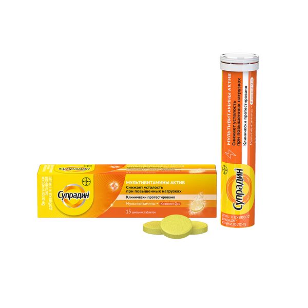Супрадин мультивитамины Актив таблетки шипучие массой 4,9г №15