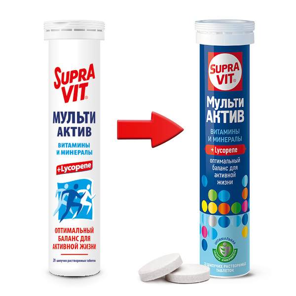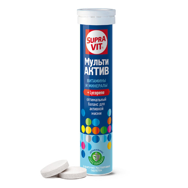 СупраВит мульти актив таблетки шипучие массой 4г №20