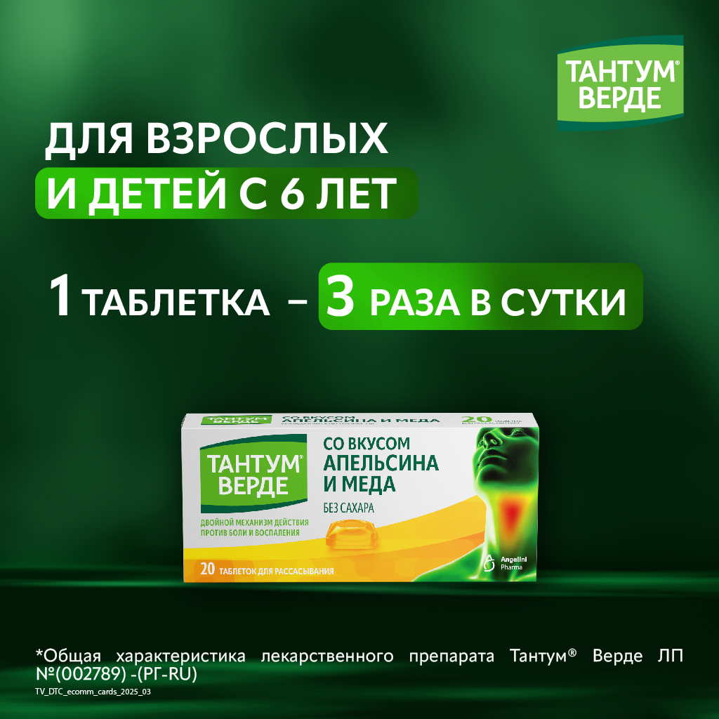 При применении препарата Тантум® Верде возможно развитие реакций гиперчувствительности. В этом случае рекомендуется прекратить лечение и проконсультироваться с врачом для назначения соответствующей терапии. У ограниченного числа пациентов присутствие язв в горле и полости рта может указывать на наличие более серьезной патологии. Если симптомы не проходят в течение более 3 дней, необходимо проконсультироваться с врачом. Применение препарата Тантум® Верде не рекомендуется у пациентов с повышенной чувствительностью к ацетилсалициловой кислоте или другим нестероидным противовоспалительным препаратам. Препарат Тантум® Верде должен с осторожностью применяться у пациентов с бронхиальной астмой в анамнезе по причине возможности развития у них бронхоспазма на фоне приема препарата. Препарат содержит изомальтозу и, в связи с этим, не рекомендуется у пациентов с наследственной непереносимостью фруктозы. Применение препарата у детей возможно только под наблюдением взрослых во избежание проглатывания таблетки.