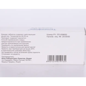 действующее вещество: телмисартан — 80 мг вспомогательные вещества: натрия гидроксид, меглумин, повидон К30, маннитол, магния стеарат.