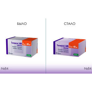 Действующее вещество: телмисартан 40,00 мг/80,00 мг/40,00 мг/80,00 мг