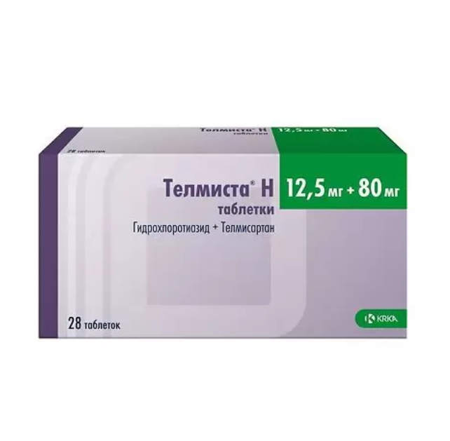 Действующие вещества: Гидрохлоротиазид 12,50 мг/12,50 мг/25,00 мг, Телмисартан 40,00 мг/80,00 мг/80,00 мг.
