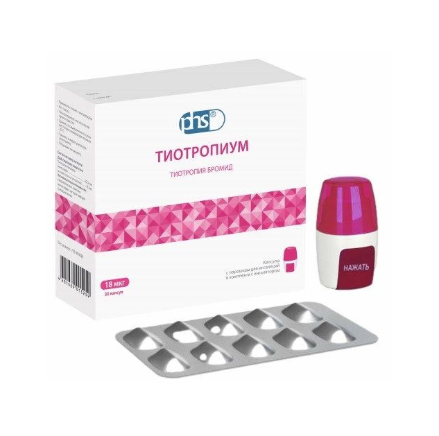 Тиотропиум капсулы с порошком для ингаляций 18мкг №30 в комплекте с устройством для ингаляций