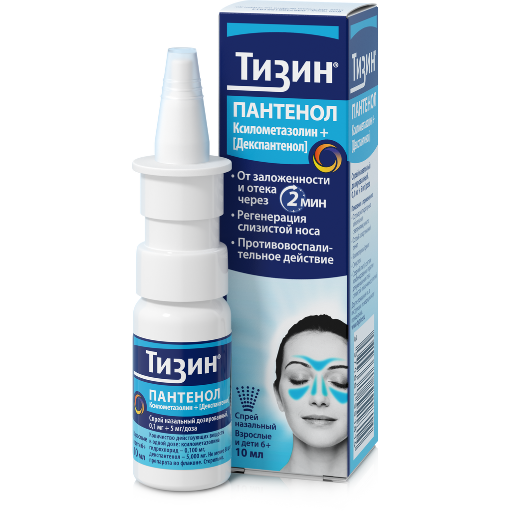 Тизин Пантенол спрей назальный дозированный 0,1мг+5мг/доза флакон 10мл