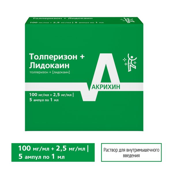 Толперизон+Лидокаин раствор для внутримышечного введения 100мг/мл+2,5мг/мл ампулы 1мл №5