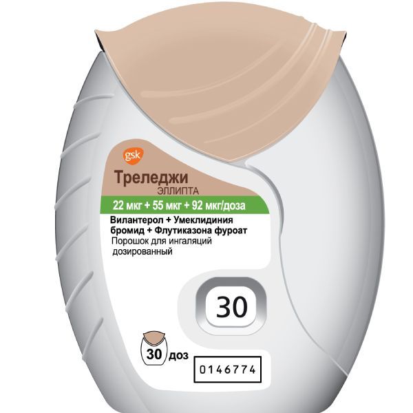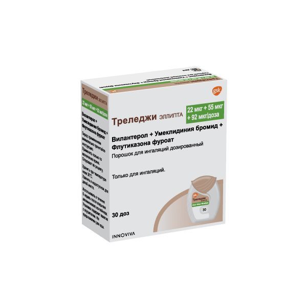 Треледжи Эллипта порошок для ингаляций дозированный 22мкг+55мкг+92мкг/доза 30доз