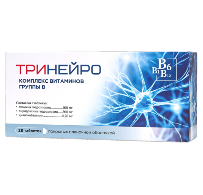 Тринейро таблетки покрытые плёночной оболочкой 200мг+100мг+0,2мг №20