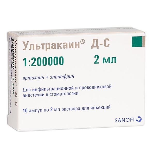 Препарат Ультракаин® Д-С, применяемый для местной инфильтрационной и проводниковой анестезии в стоматологии, является комбинированным препаратом, в состав которого входит артикаин (местноанестезирующее средство амидного типа) и эпинефрин (адреналин) (сосудосуживающее средство). Эпинефрин добавляется в состав препарата для пролонгирования действия анестезии.