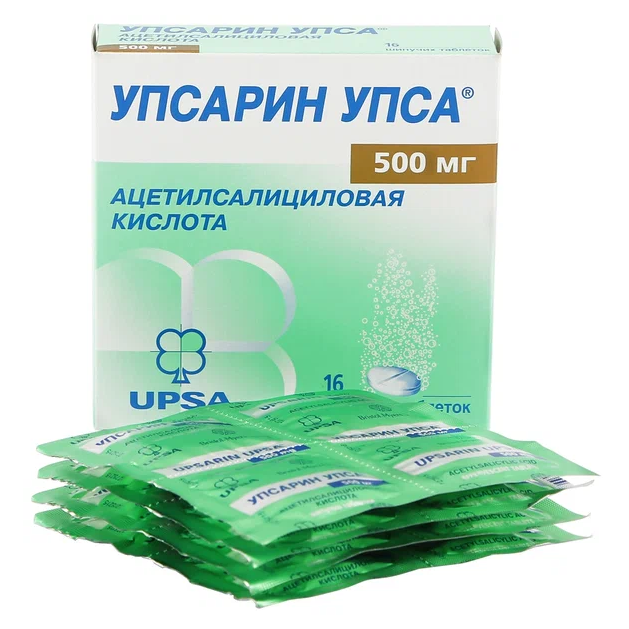 Растворяясь в воде, таблетка препарата Упсарин Упса® образует буферный раствор, который после приёма препарата поддерживает действующие вещества в растворенном виде, не позволяя им при контакте с кислой средой желудка переходить обратно в нерастворенную форму и осаждаться в виде твёрдых частиц на его стенках. В результате обеспечивается более быстрое и полное всасывание препарата, а также его лучшая переносимость по сравнению с обычными таблетками ацетилсалициловой кислоты. Максимальная концентрация препарата в плазме достигается через 15-40 минут. Биодоступность ацетилсалициловой кислоты изменяется в зависимости от принимаемой дозы: около 60 % — для доз менее 500 мг и 90 % для доз более 1 г в связи с насыщением реакции гидролиза в печени. Ацетилсалициловая кислота подвергается быстрому гидролизу с образованием активного метаболита — салициловой кислоты.