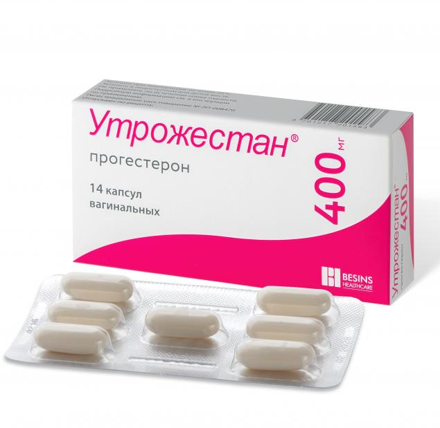 Действующее вещество: прогестерон микронизированный 300 или 400 мг.