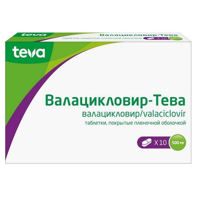 Валацикловир-Тева, 500 мг, таблетки, покрытые плёночной оболочкой