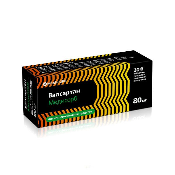 Валсартан Медисорб таблетки покрытые плёночной оболочкой 80мг №30