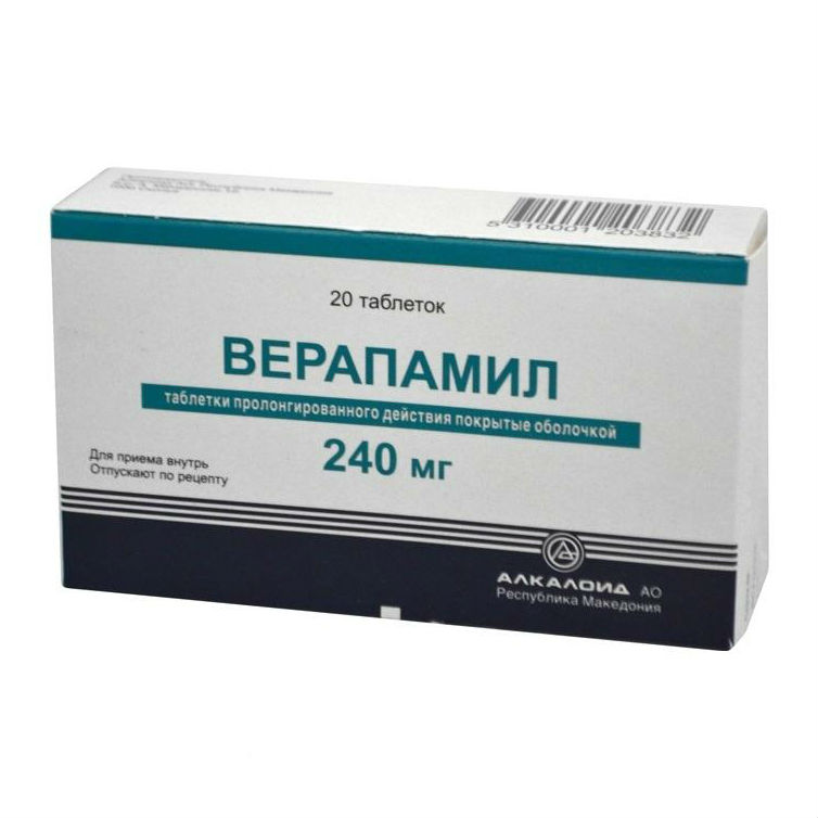 1 таблетка содержит 240 мг верапамила.