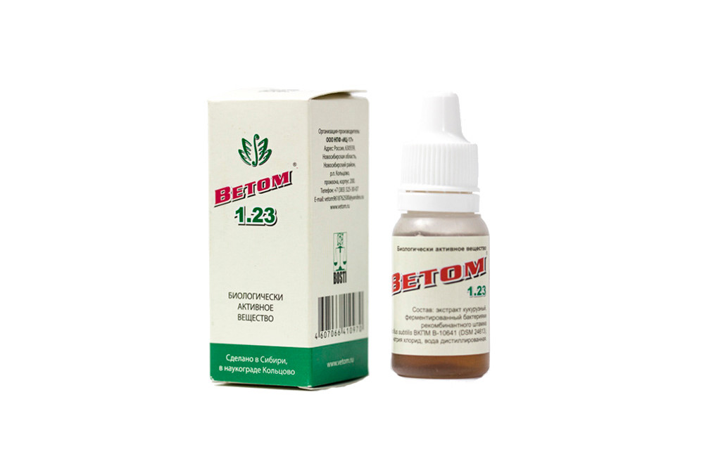 При наличии болезни кратность приёма следует увеличить до 10 и более капель в день в течение 10 дней. Ветом 1.23 не вызывает привыкания.
