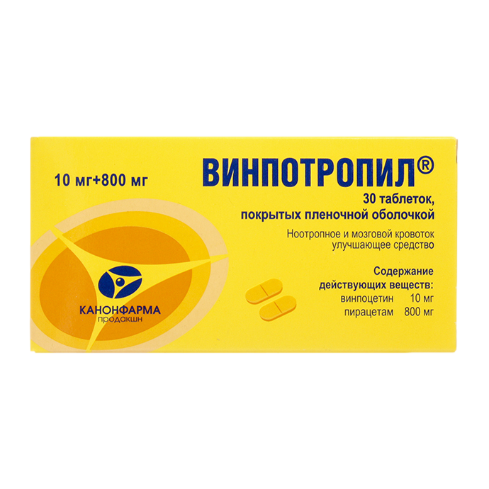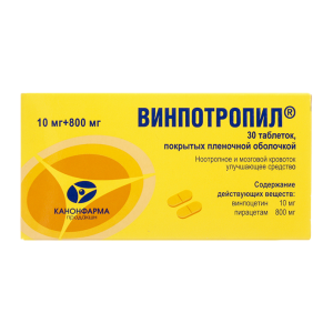 Винпотропил таблетки покрытые пленочной оболочкой 10мг + 800мг №30