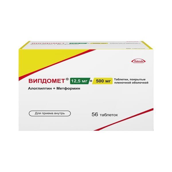Препарат Випдомет® представляет собой комбинацию двух гипогликемических средств с взаимодополняющими и разными механизмами действия, предназначенную для улучшения контроля гликемии у пациентов с сахарным диабетом 2 типа: алоглиптина, ингибитора фермента дипептидилпептидазы-4 (ДПП-4), и метформина, представителя класса бигуанидов.