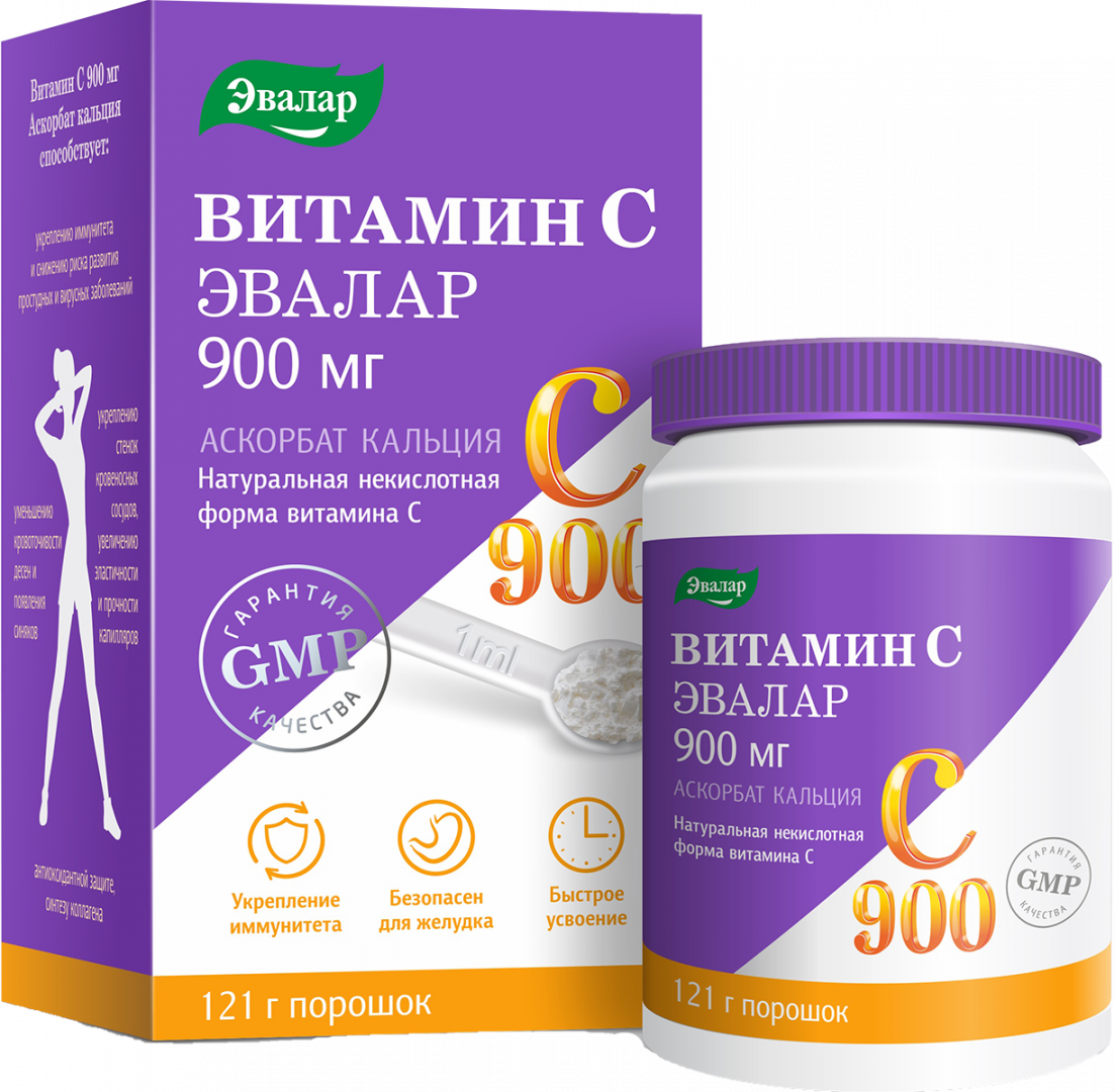 Купить Витамин С Эвалар 900мг Аскорбат кальция порошок 121г по низкой цене