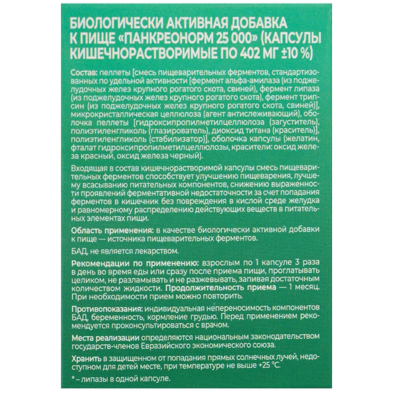 Панкреонорм 25000 «Витамир» капсулы массой 402мг №50