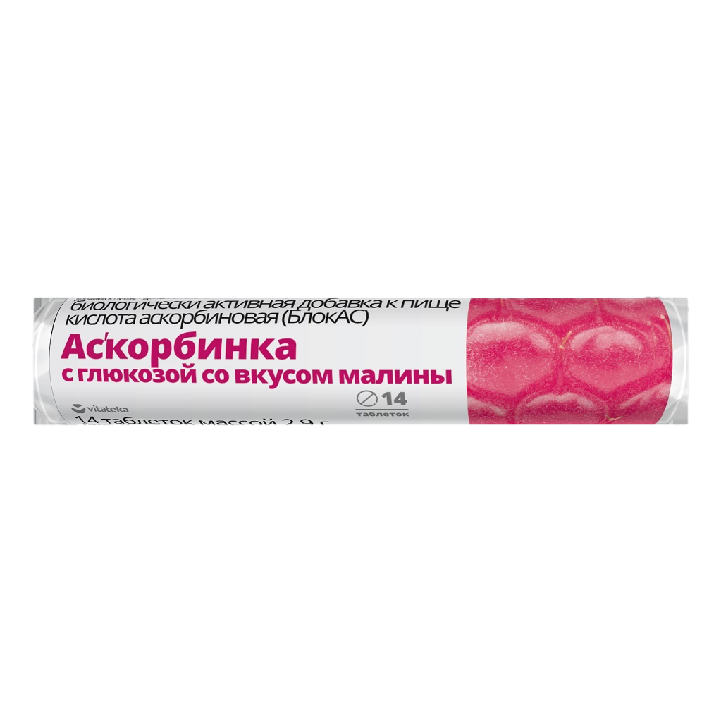 Витатека Аскорбинка кислота аскорбиновая с глюкозой со вкусом малины таблетки массой 2,9г №14 (отпуск 29шт)