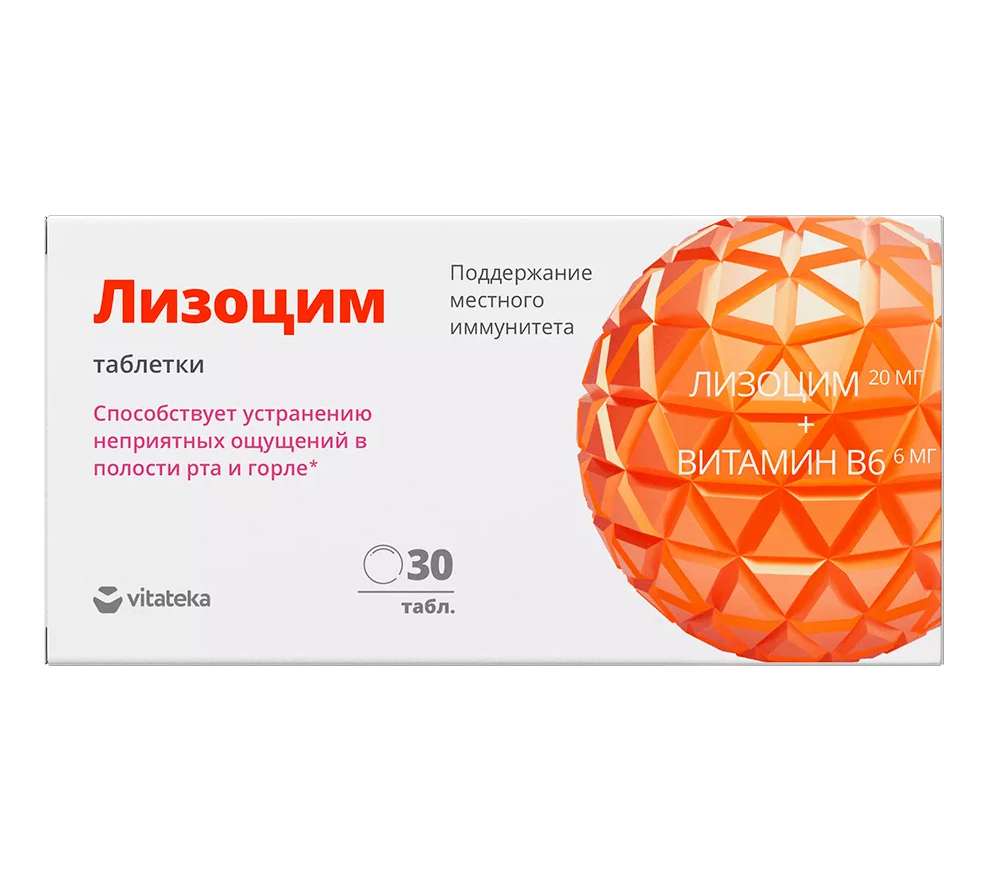 Лизоцим и витамин В6 способствуют: устранению неприятных ощущений в полости рта и горле, повышению скорости регенерации поврежденной слизистой, усилению местного иммунитета и ускорению процесса выздоровления. Лизоцим, являясь антибактериальным агентом и ферментом, помогает бороться с патогенными микроорганизмами путем разрушения их клеточной стенки. Витамин В6 помогает защитить слизистые ротовой полости, участвуя в регенерации эпителия.