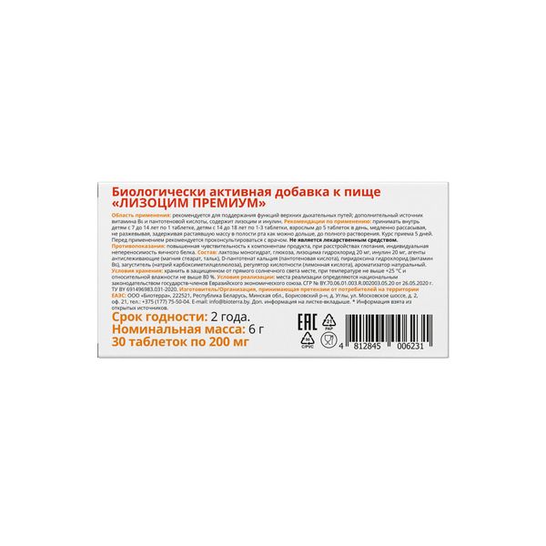 - 20 мг лизоцима в 1 таблетке.