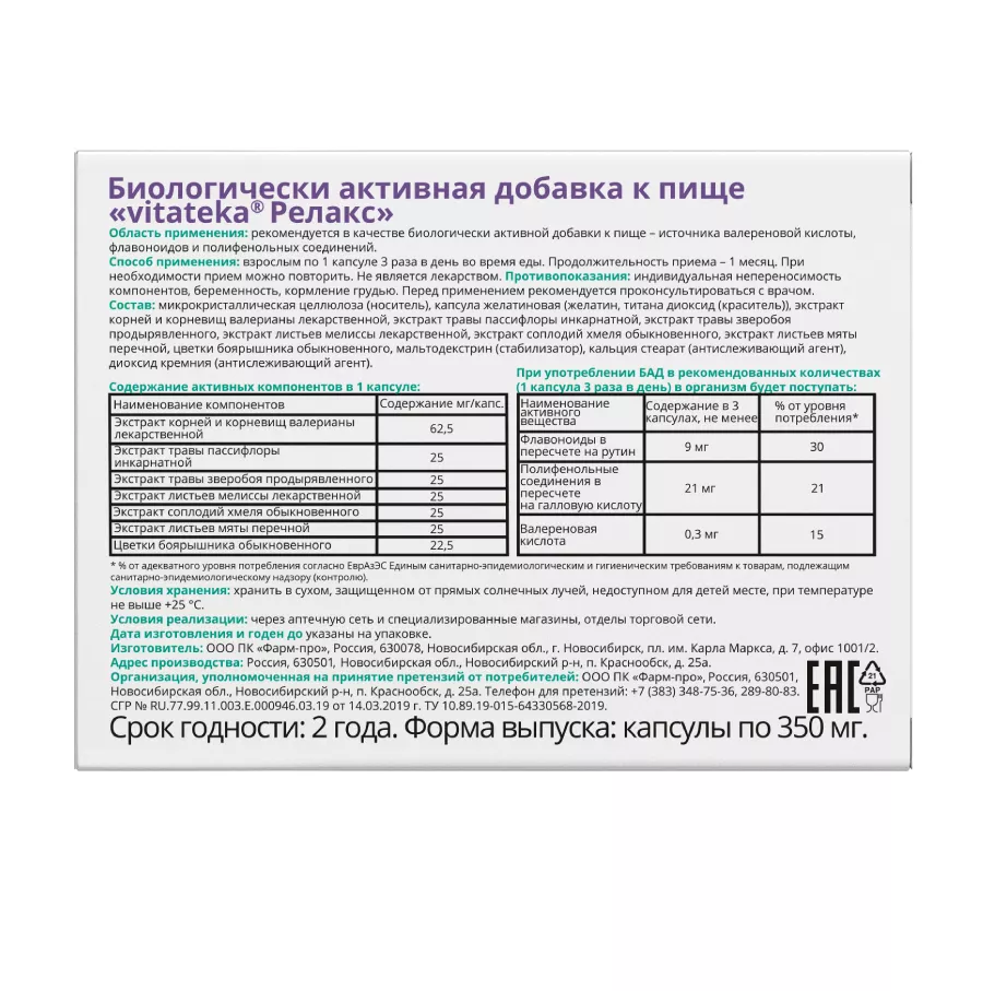 Активные компоненты комплекса способствуют снятию нервного напряжения. Источник валереновой кислоты, флавоноидов и полифенольных соединений.