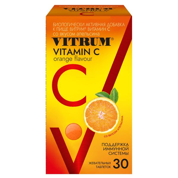 Витрум Витамин С таблетки жевательные покрытые оболочкой массой со вкусом апельсина массой 930,01мг №30