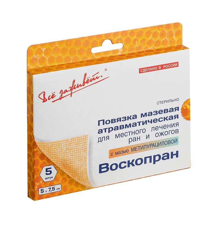 ВоскоПран с мазью Метилурациловой стимулирующая стерильная повязка мазевая атравматическая 5х7,5см №5