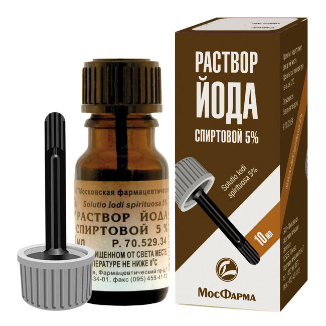 Йод раствор для наружного применения спиртовой 5% с крышкой-лопаткой 10мл