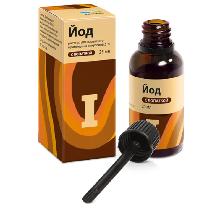 Йод раствор для наружного применения спиртовой 5% с крышкой-лопаткой 25мл