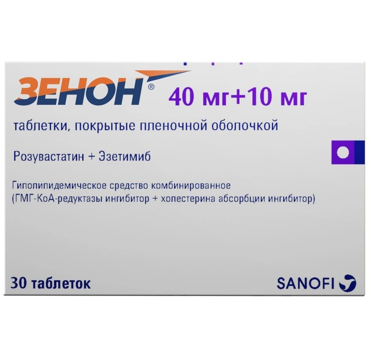 ХС поступает в плазму крови в результате всасывания в кишечнике и эндогенного синтеза. Препарат Зенон® содержит эзетимиб и розувастатин, два гиполипидемических компонента, дополняющих друг друга по механизму действия. Комбинация розувастатин + эзетимиб снижает повышенную концентрацию общего холестерина (ОХС) в плазме крови, холестерина липопротеинов низкой плотности (ХС-ЛПНП), аполипопротеина В (АпоВ), триглицеридов (ТГ) и холестерина липопротеинов невысокой плотности (ХС-не-ЛПВП, рассчитывается как разность между концентрацией ОХС и концентрацией ХС-ЛПНП) и повышает концентрацию в плазме крови холестерина липопротеинов высокой плотности (ХС-ЛПВП) путем двойного ингибирования, как абсорбции, так и синтеза ХС.