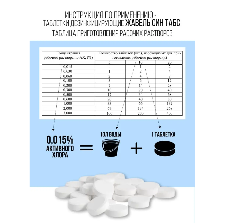 Хлорка в таблетках подойдет для дезинфекции, уборки, стерилизации различных промышленных, бытовых помещений и объектов (бассейн, ванная, унитаз, инструменты, полы и стены).
