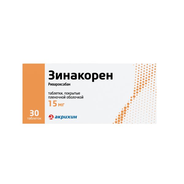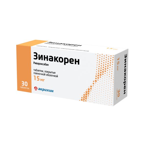 для предупреждения образования тромбов в венах у пациентов после больших ортопедических операций на ногах, например, эндопротезирования тазобедренного или коленного суставов — одна таблетка препарата Зинакорен 10 мг один раз в сутки, для предупреждения повторного образования тромбов в венах ног (тромбоз глубоких вен) и в кровеносных сосудах лёгких (тромбоэмболия лёгочной артерии) после как минимум 6 месяцев антитромботического лечения, рекомендованная доза составляет 1 таблетка 10 мг один раз в сутки или одна таблетка 20 мг один раз в сутки. Ваш лечащий врач назначил Вам дозу 1 таблетка препарата Зинакорен 10 мг 1 раз в день.