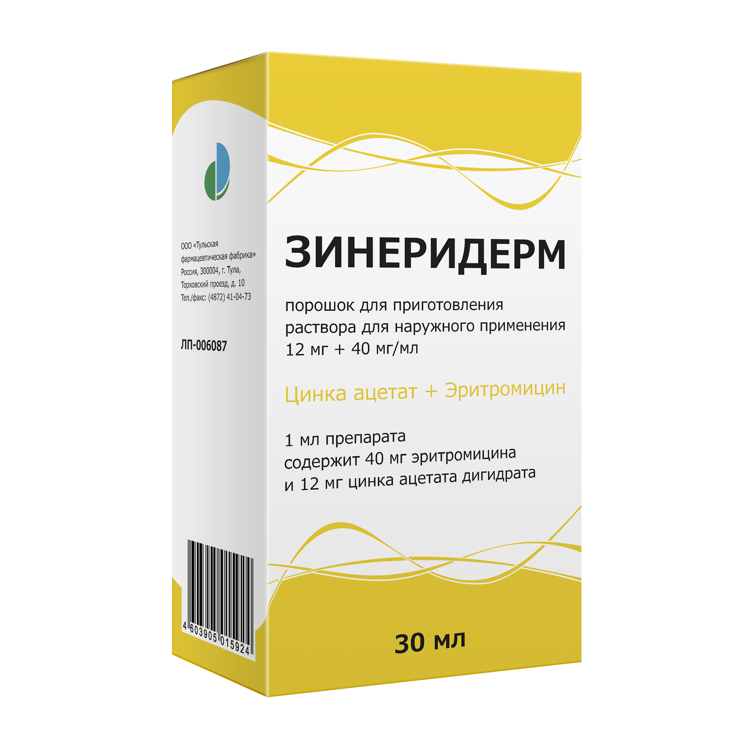 Действующие вещества: эритромицин — 40 мг, цинка ацетата дигидрат — 12 мг.