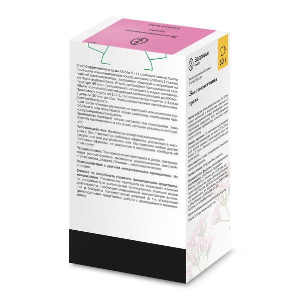 Трава измельчённая по 35 г, 50 г в пачке картонной с внутренним пакетом. Текст инструкции по применению полностью наносится на пачку.