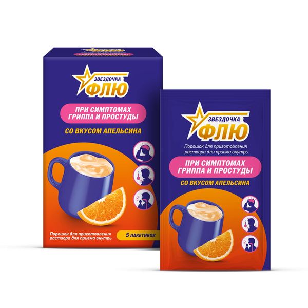 Звездочка флю порошок для приготовления раствора для приема внутрь апельсиновый пакетики №5