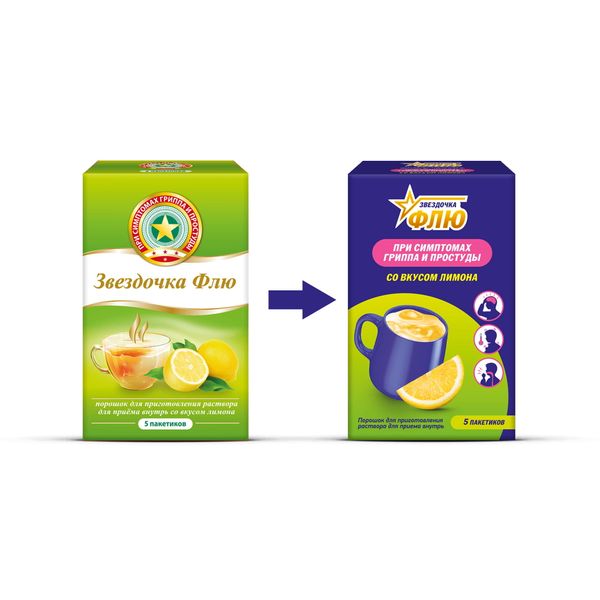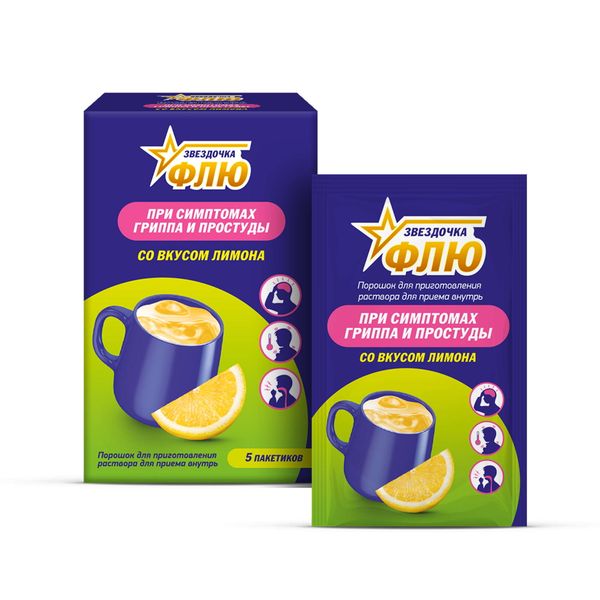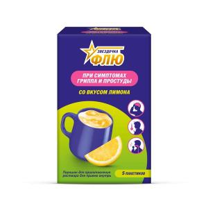 Звездочка флю порошок для приготовления раствора для приема внутрь лимонный пакетики №5
