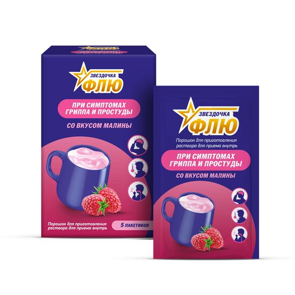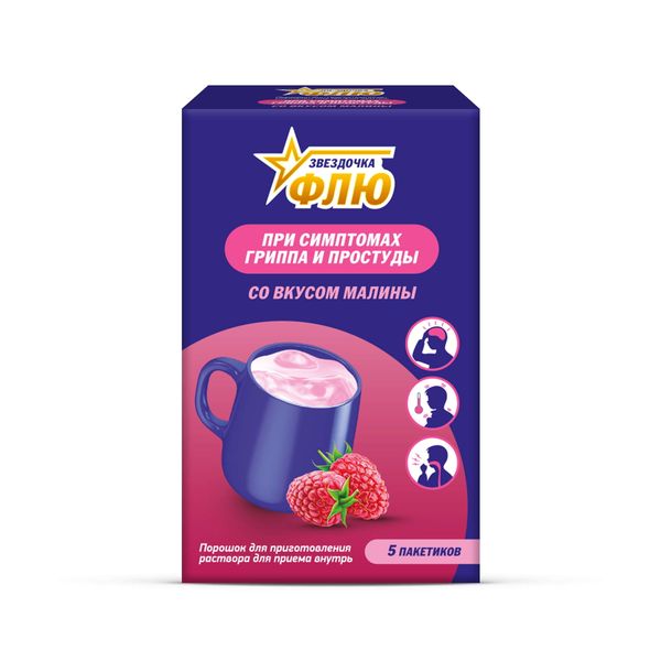 Звездочка флю порошок для приготовления раствора для приема внутрь малиновый пакетики №5